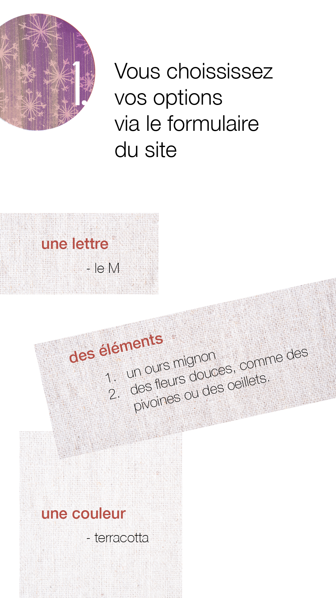 + 1 élément (animal, végétal, motif, objet...) : CHF 180.-